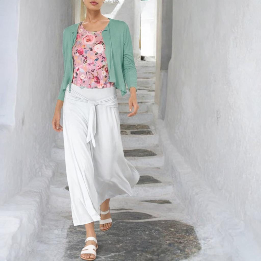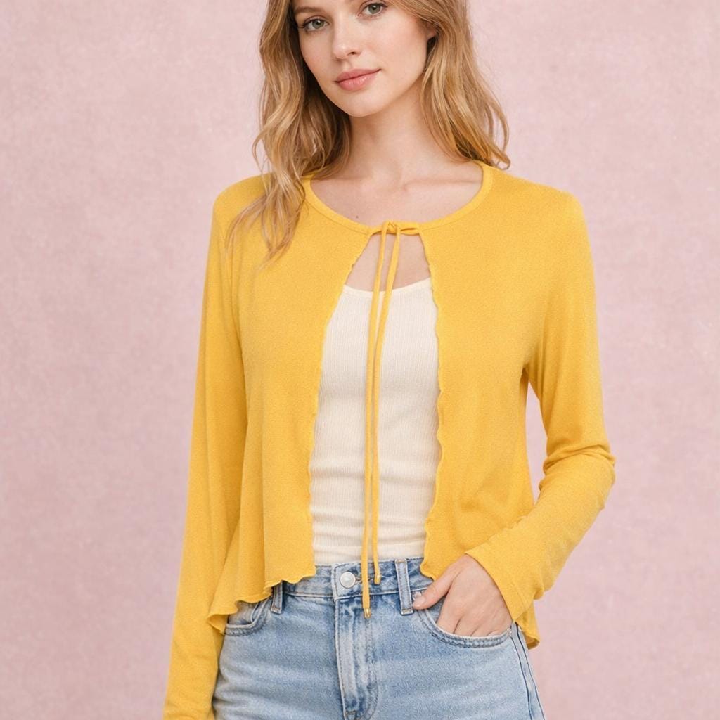 *Cardigan with a flared asymmetric hem with scalloped edge. Made of very supple Tencel, soft and shiny and feeling as silk.