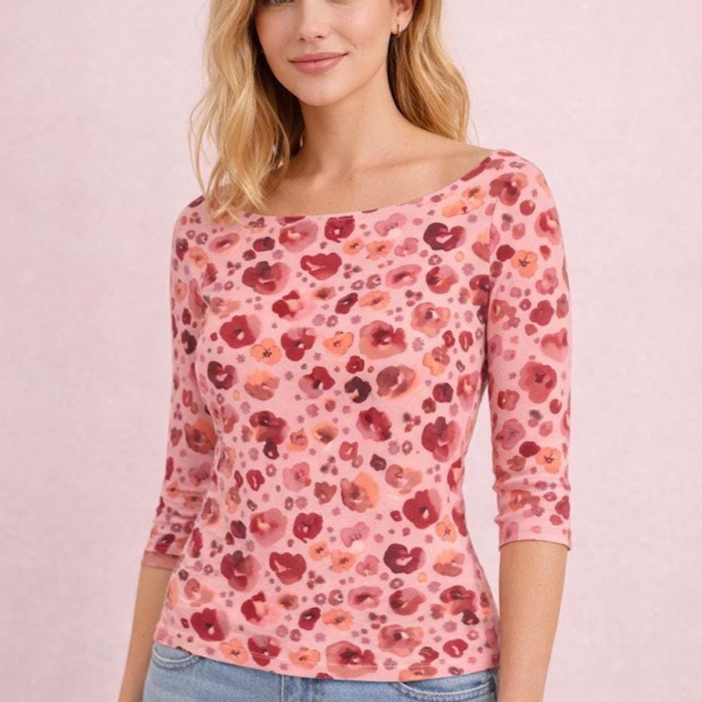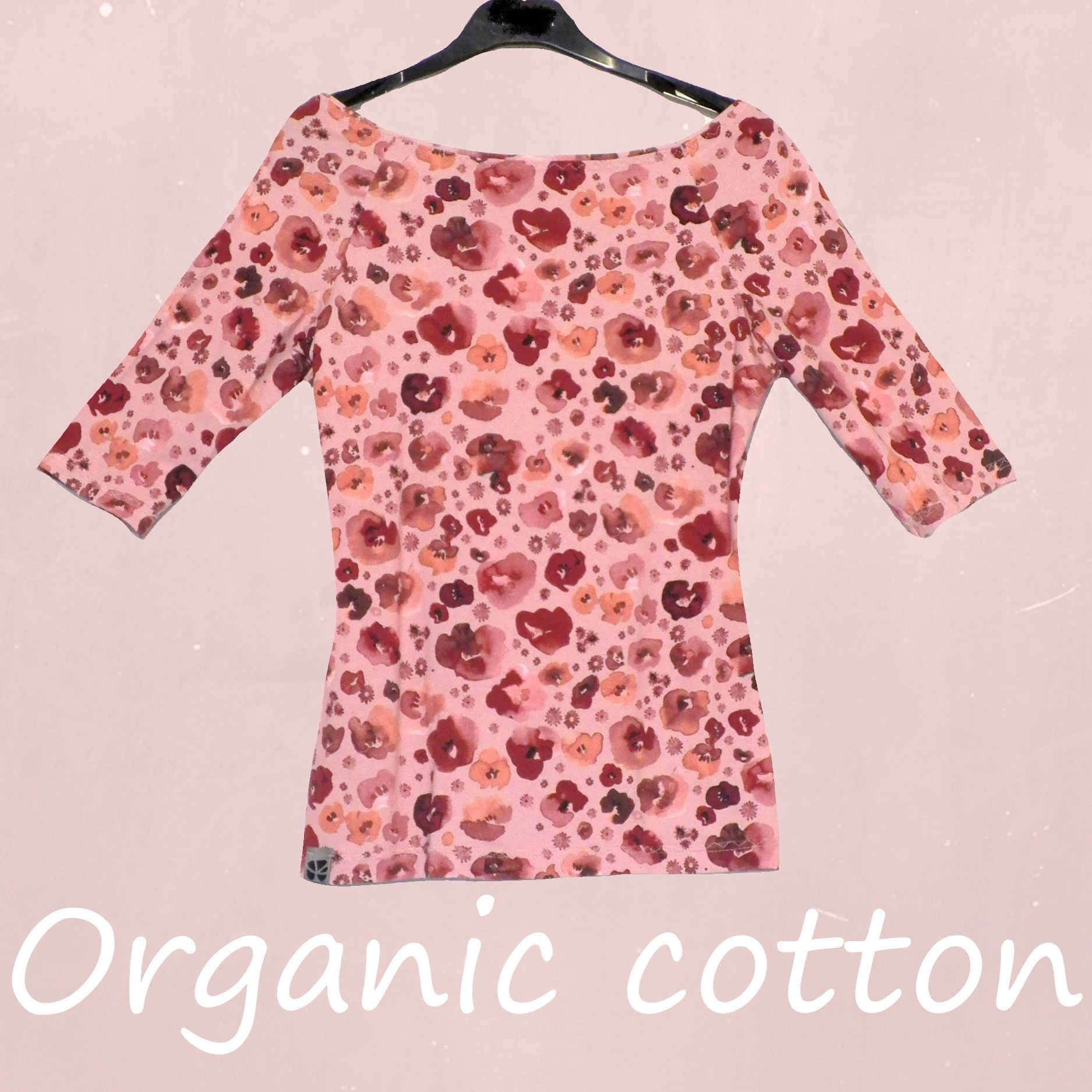 *Basic T shirt with boat neckline. Made of stretchy smoothly falling, organic jersey with a digital flower print.
