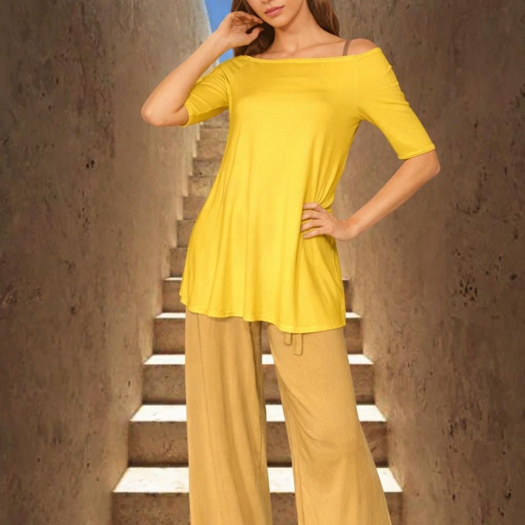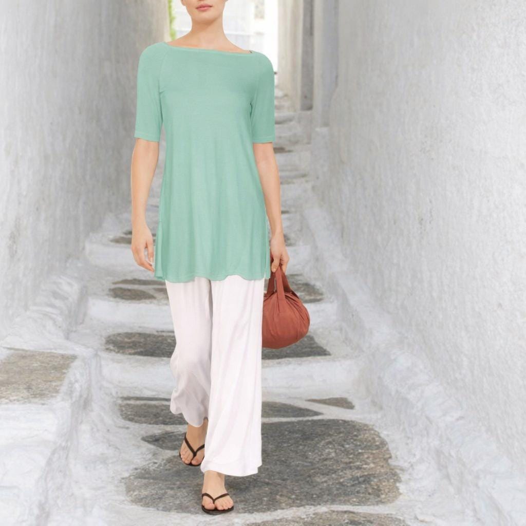 *A line shirt with a spacious boat neck, made of very supple floating Tencel jersey, soft and shiny and feeling as silk.