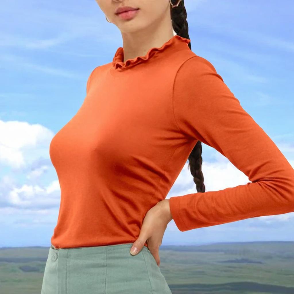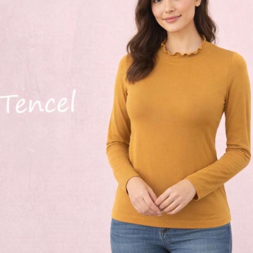 *Fitted shirt with scalloped turtle neck, made of very smooth Tencel, soft and shiny and feeling as silk.