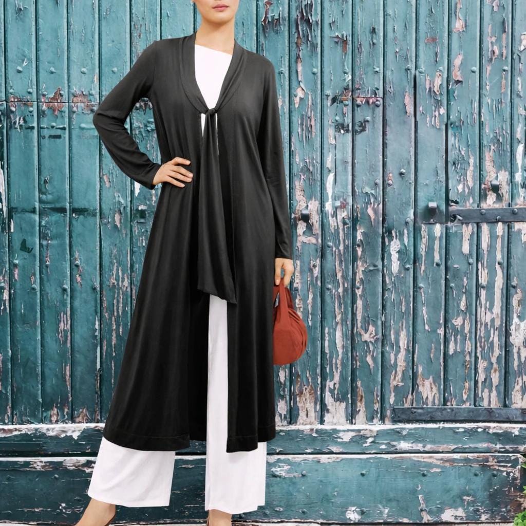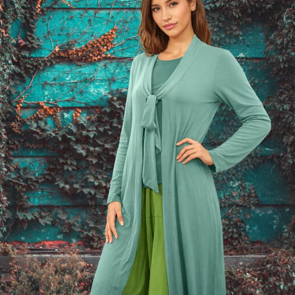 *Model: comfort fit. The long, open cardigan makes you look slimmer
