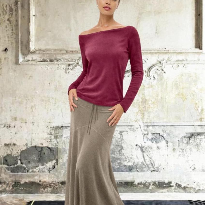 *Comfort fit shirt made with boatneck made of comfortable stretchy cotton velour. .