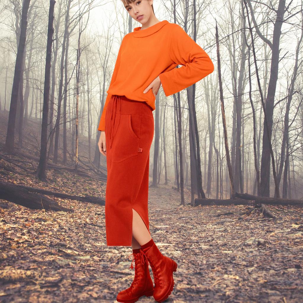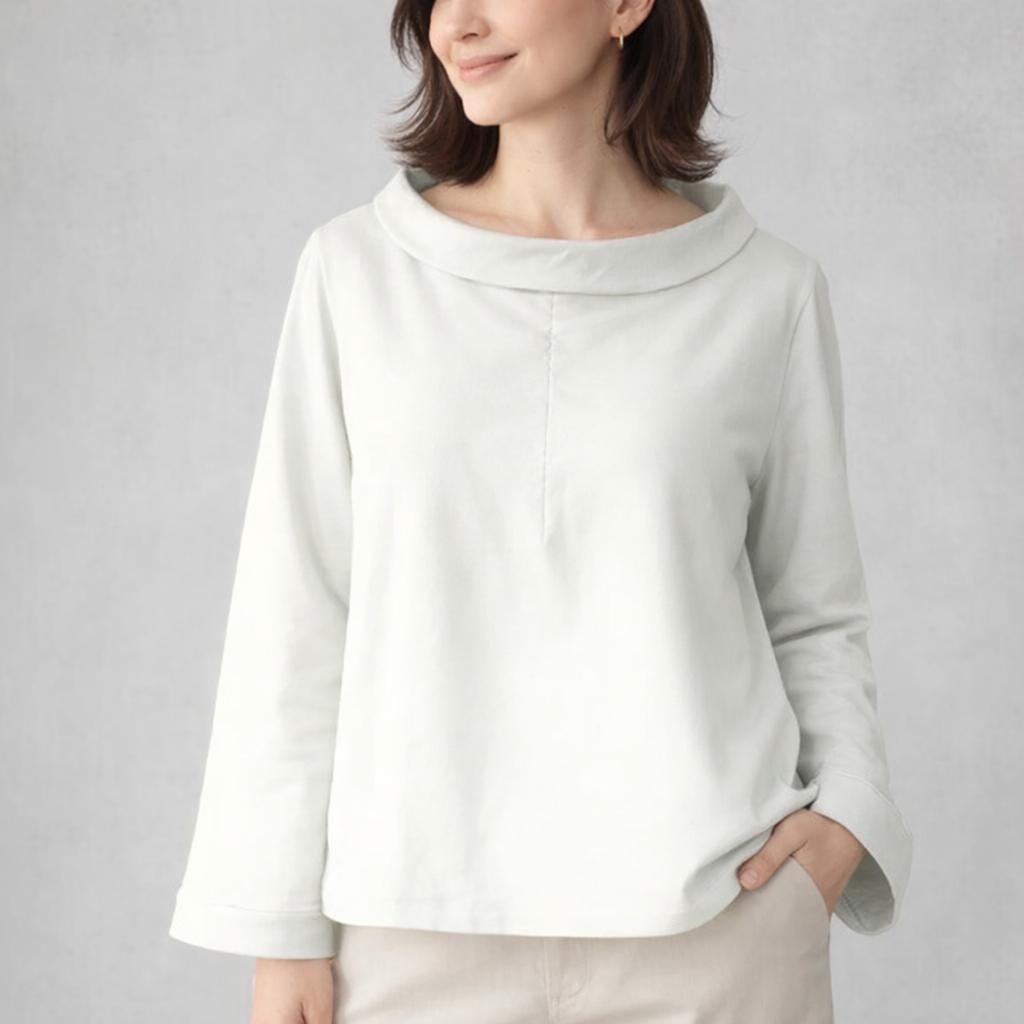 *Sweater in A-line desig with a female boat neck collar. Made in comfortable brushed cotton fabric.