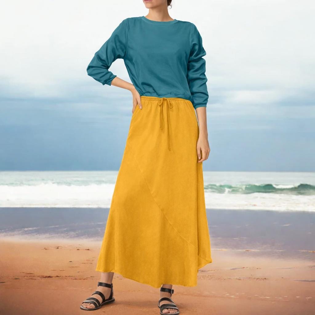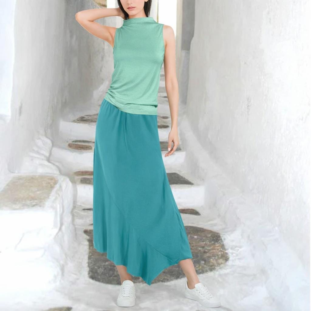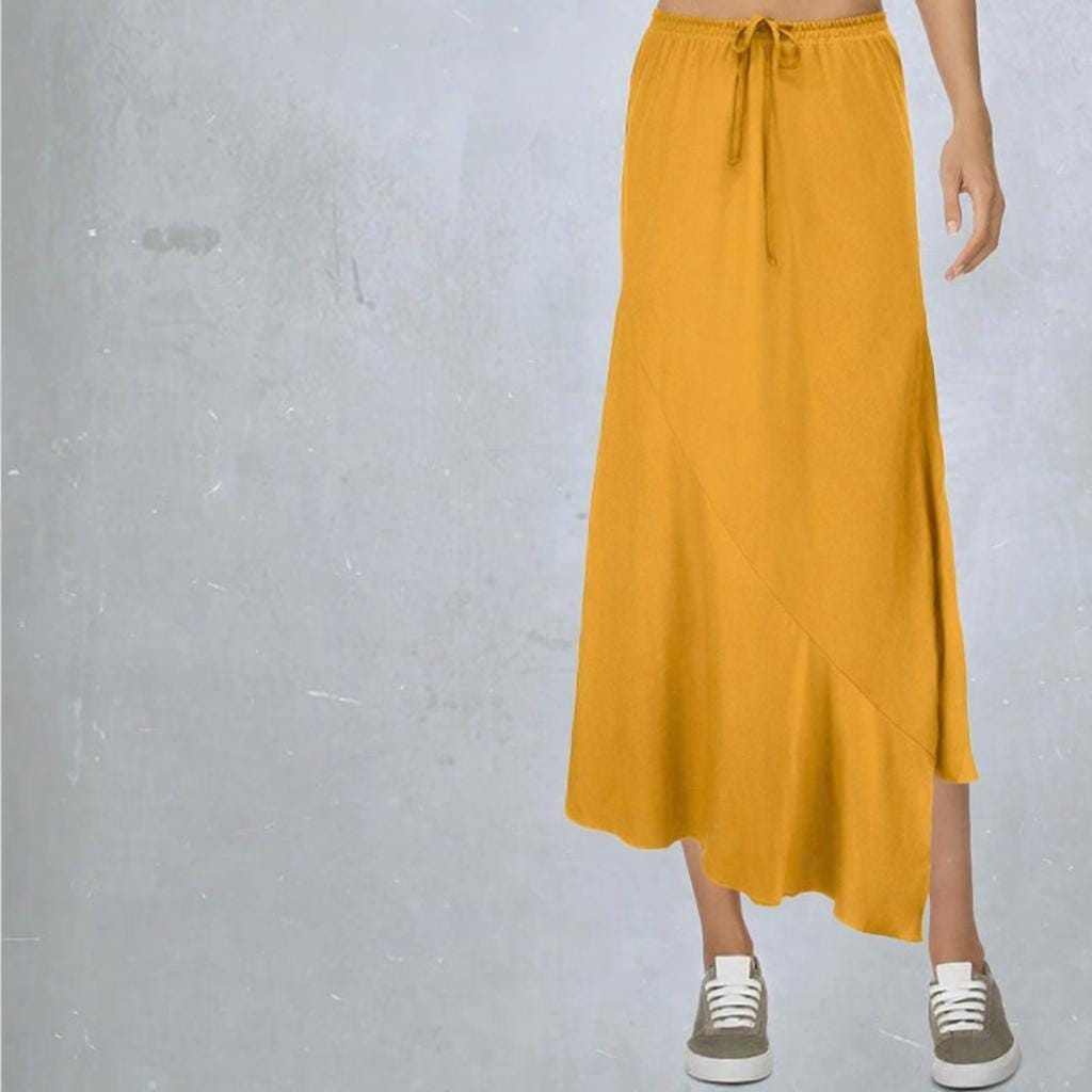 *A symmetrical skirt made of very smooth, super soft and silky shiny Tencel. The skirt has a wrinkled waist. The skirt is cut diagonally on the bias for a beautiful sliding silhouette.