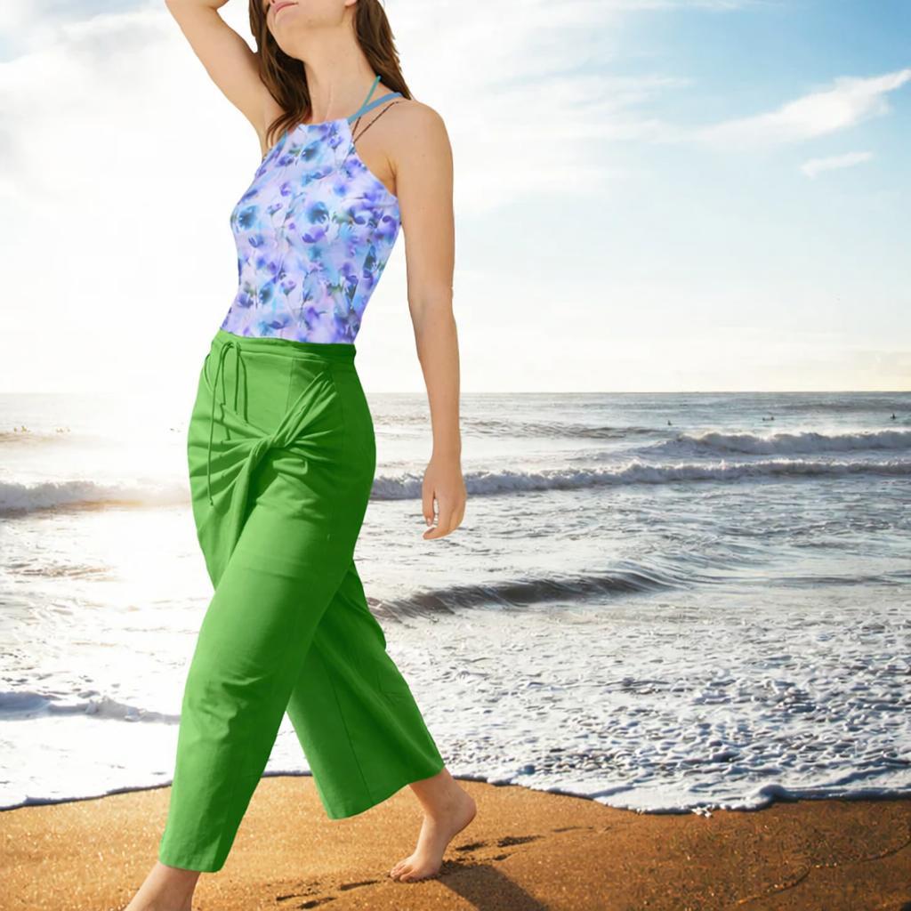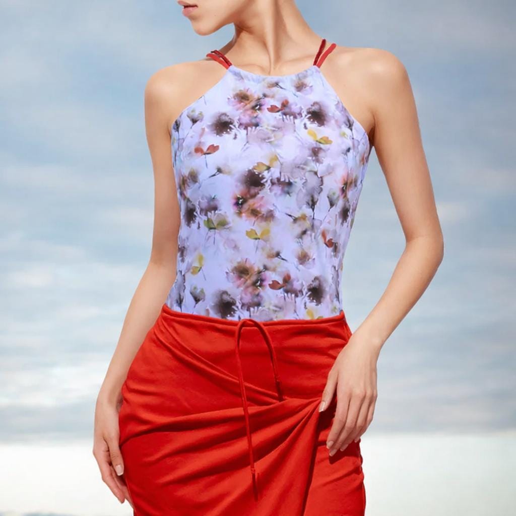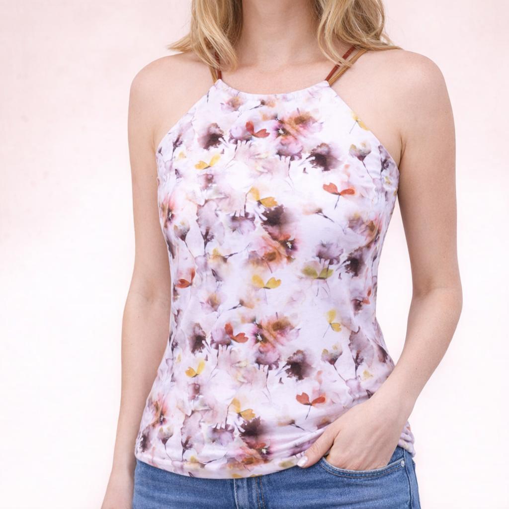 *Summer Camisole with halter-shaped neckline. Made of strong quality cotton single jersey in summer prints. Two different colors of neck strings so you can alternate colors. Other neck cord colours are included on request.
