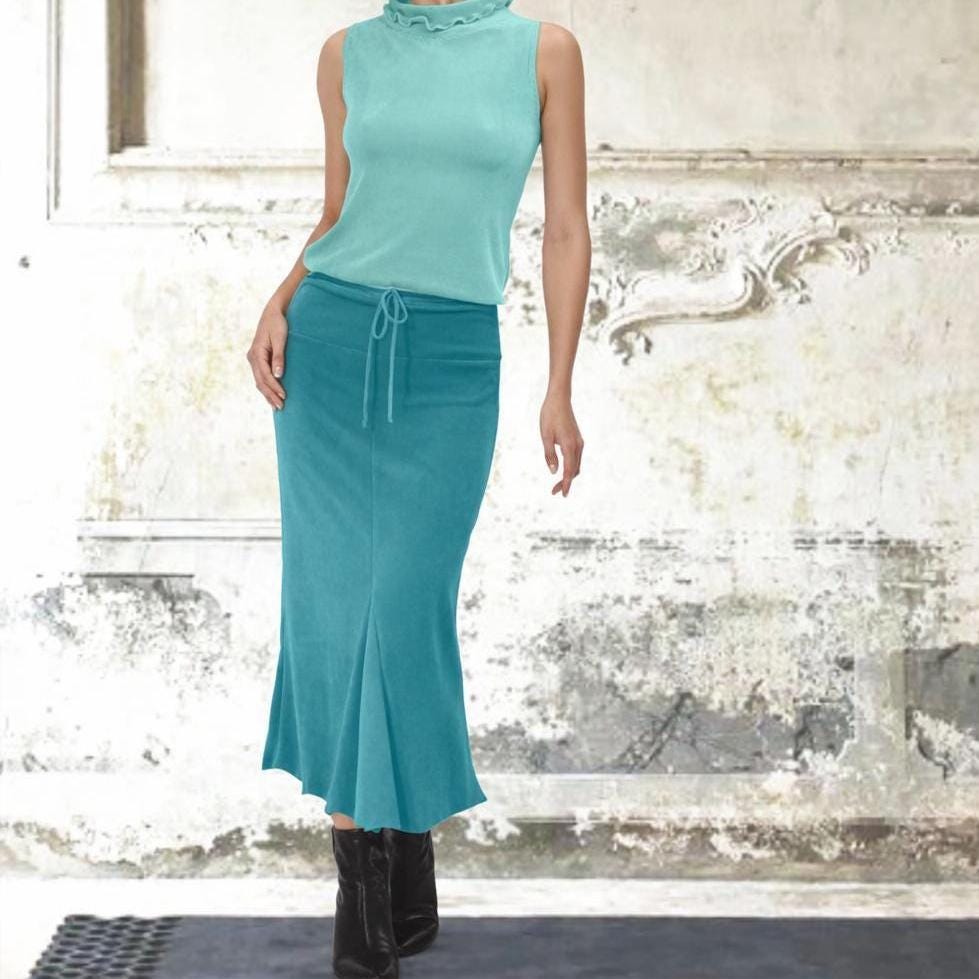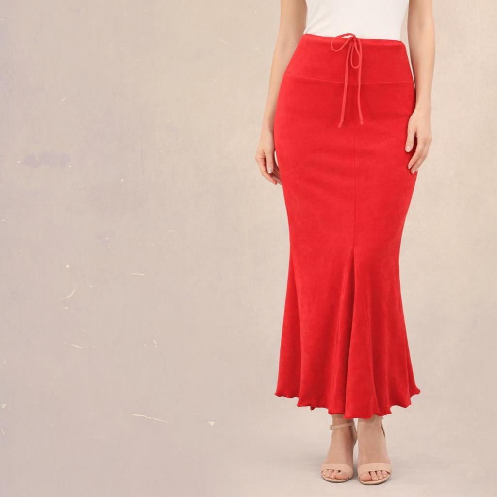 *Super elegant maxi pencil skirt. The inset ruffles and scalloped hem create a feminine hourglass figure.