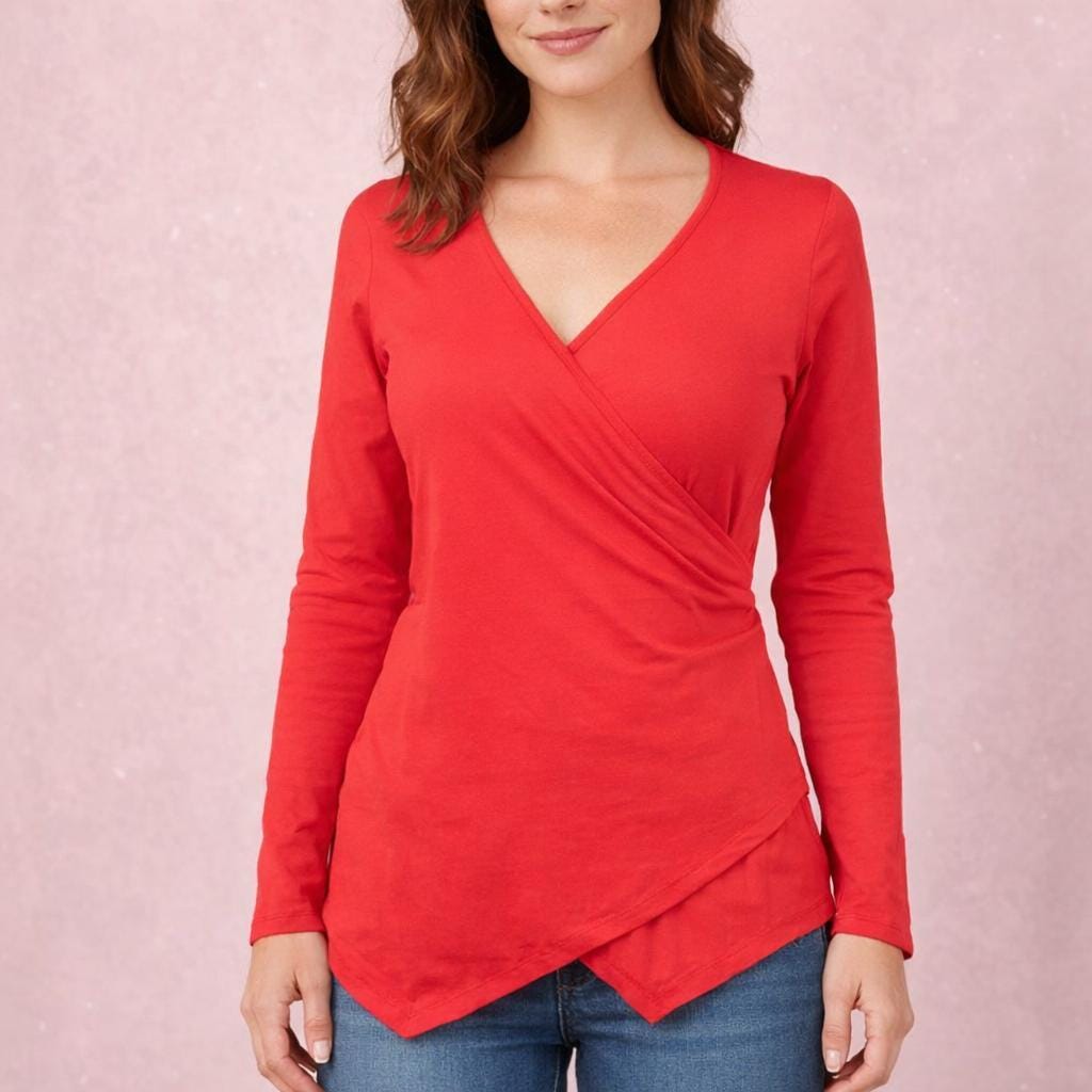 *Model; Fitted, if you want to wear the shirt a little wider, choose a size larger. Long sleeve. The wrap is fixed in the side seam.