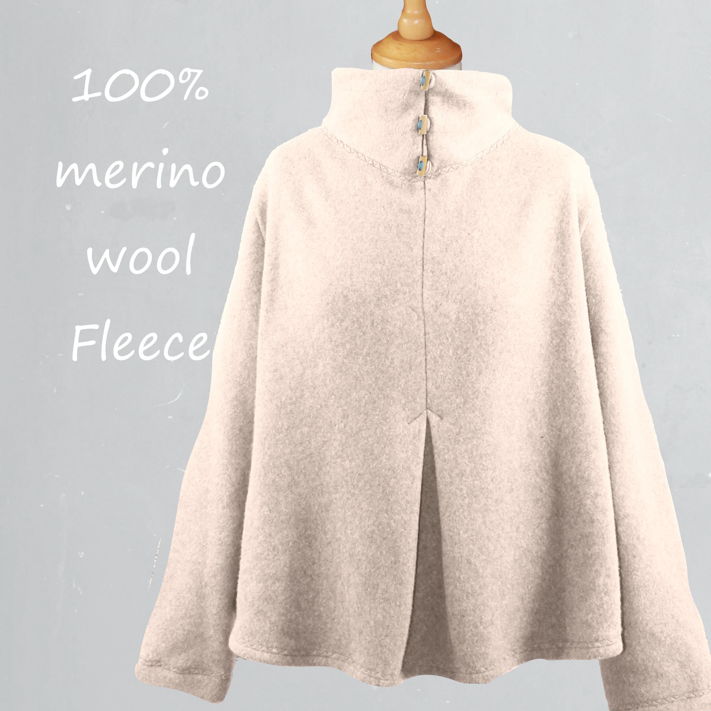 *A-line sweater in warm and soft Merino wool fleece. The sweater has a beautiful high cuff.