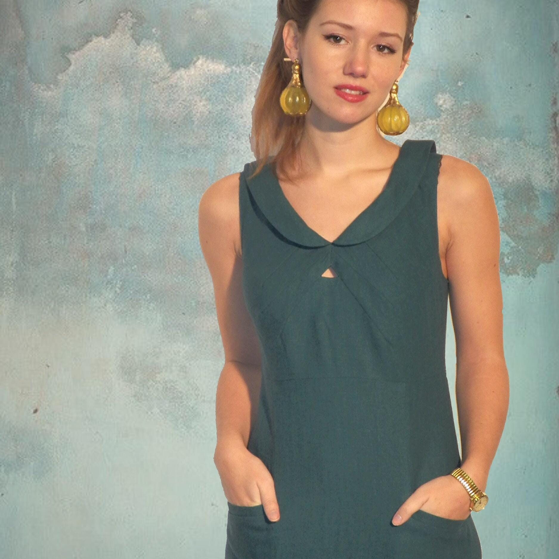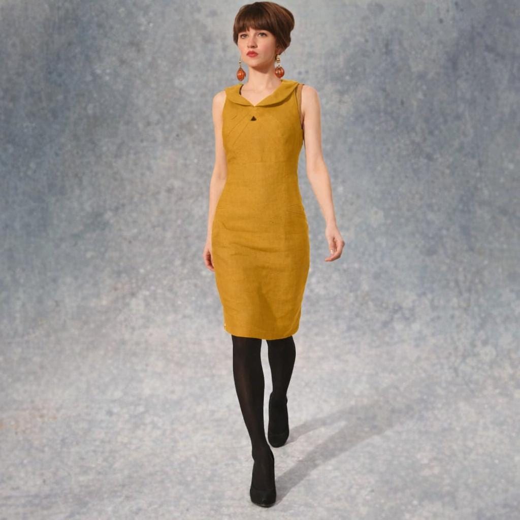 *Distinctive dress in retro design made of certified biological linen. Fitted and lined.