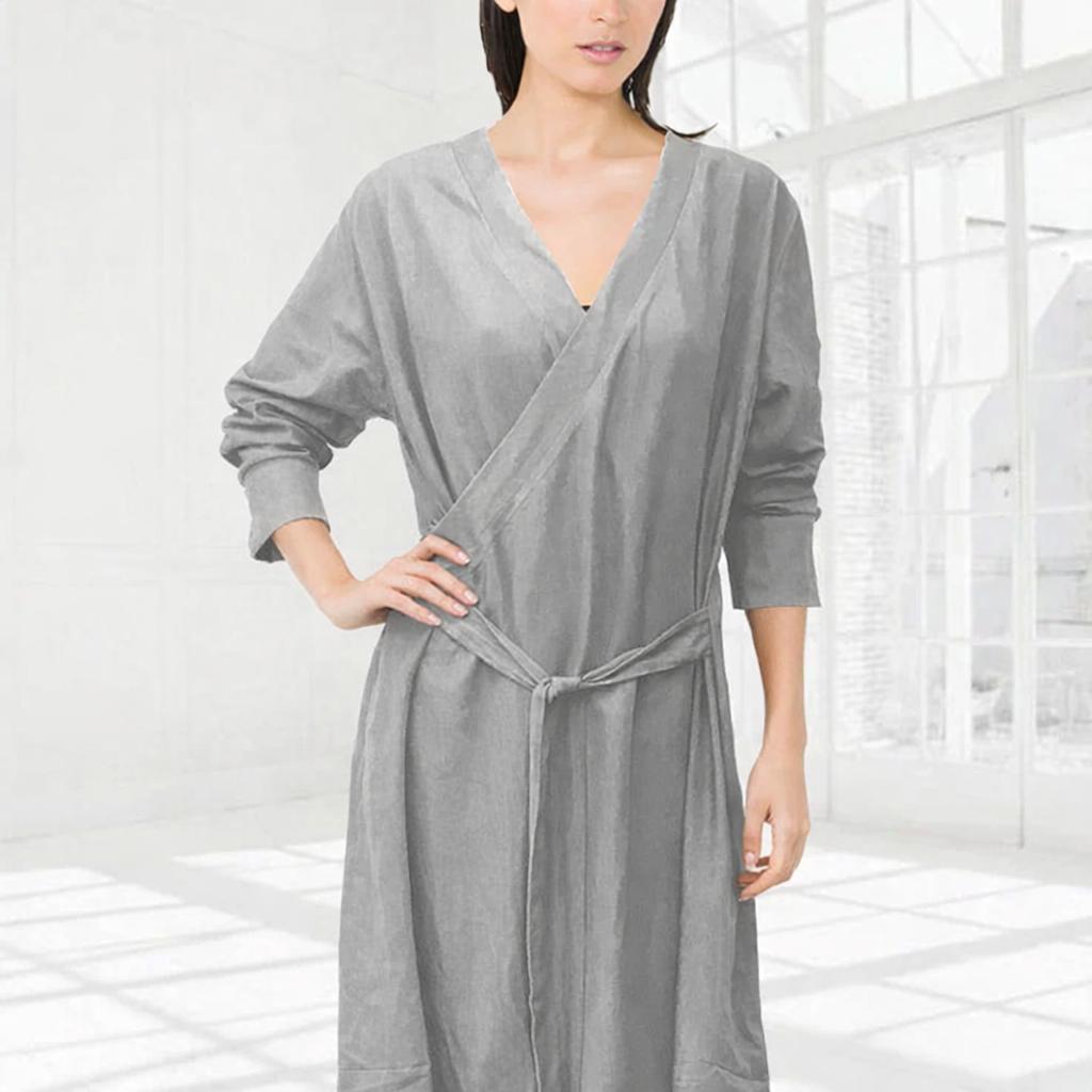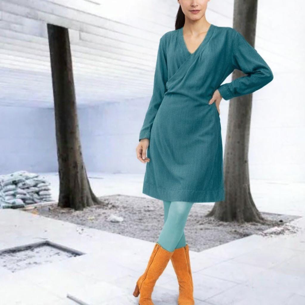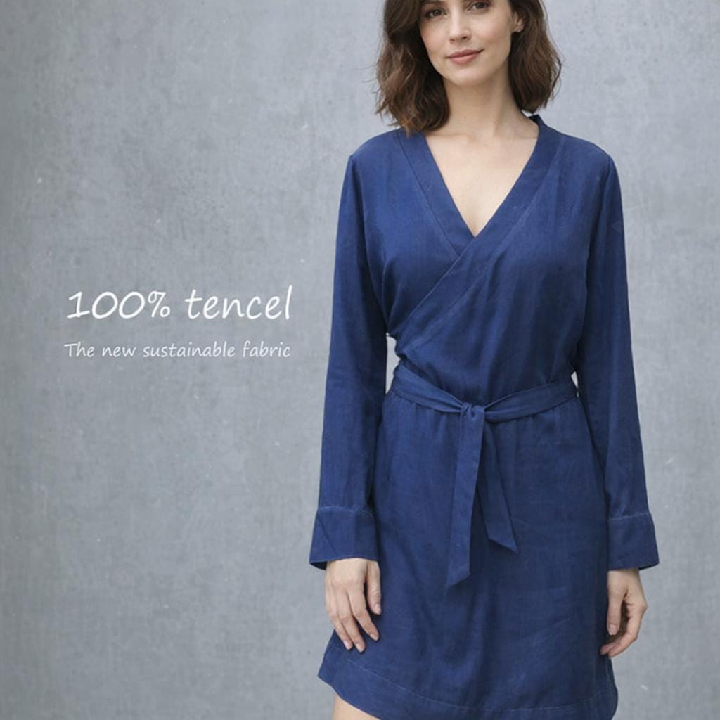 Stylish tunic dress made of very supple fluid tencel, soft and shiny and feeling as silk. Tencel (Lyocell) is a relatively new fabric. This fabric has the luxurious feel of silk, is very strong and even better moisturing than cotton. It's just like viscose made from cellulose (wood chips of the eucalyptus tree) and is therefore also called "the new viscose". The production process ( to come to the yarn) is very environmentally friendly, in contrast to viscose. The used water and (often harmful) solvents are all reused in a closed loop so that there will be as little as possible waste and environment impact. Tencel is one of the most sustainable fabrics. You can just wash it in the washing machine and the fabric doesn't shrink! Available in jeans and anthracite.