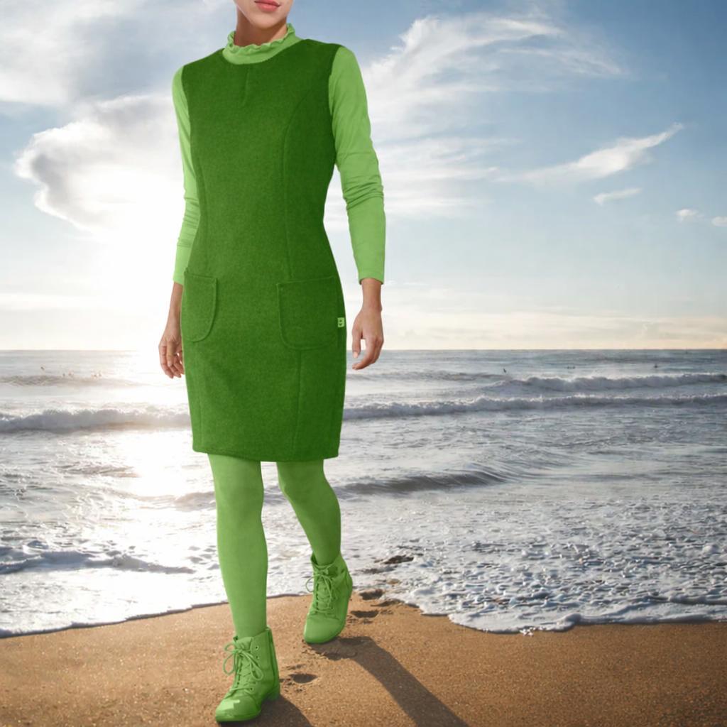 * MODEL: slightly fitted classic model. The fabric is knitted and is therefore stretchy and therefore very comfortable to wear. You can therefore also wear the dress fitted. Wear this sleeveless dress in a classic style with a pretty blouse underneath, or wear it tough with a high neck top and sturdy boots.