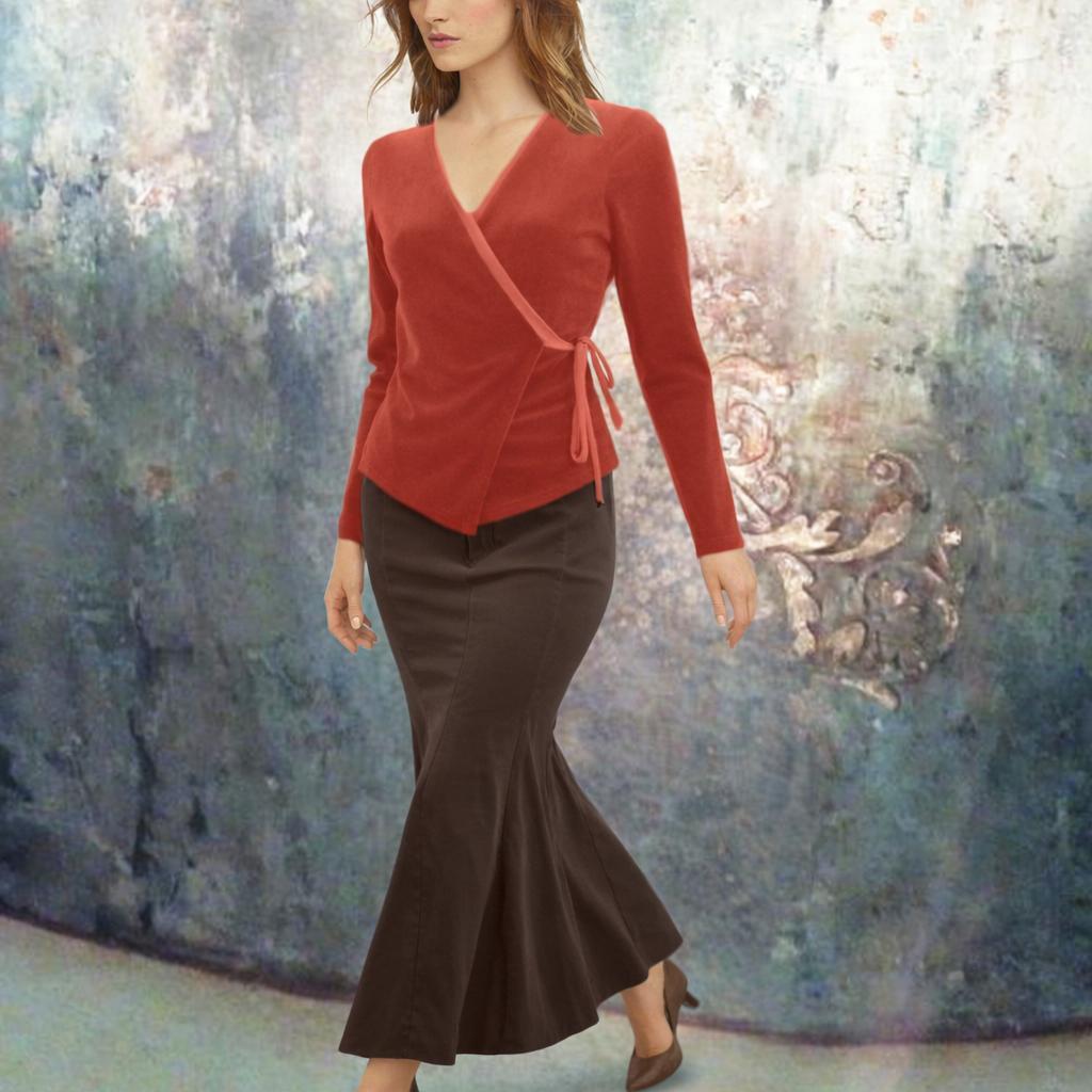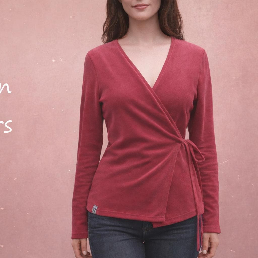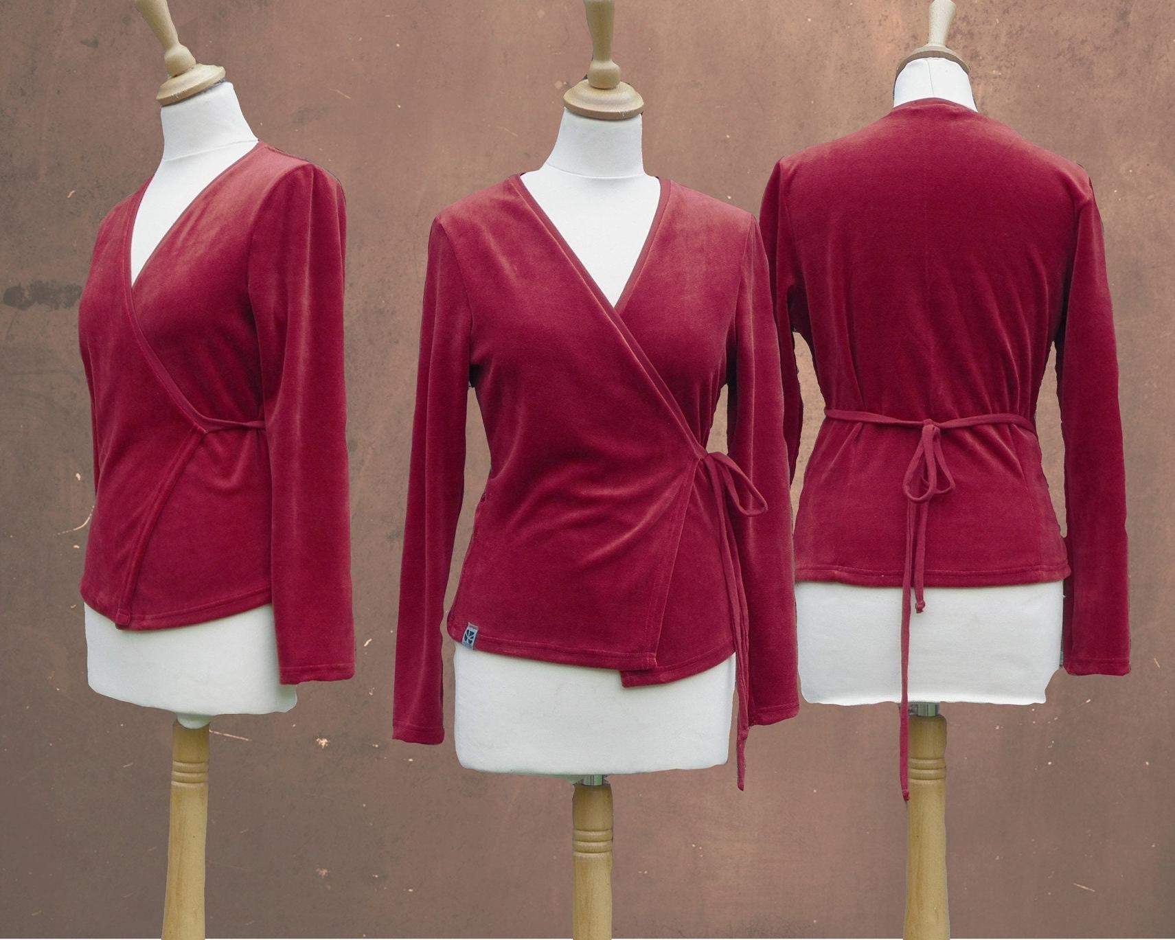 *Wrap Cardigan made of comfortable stretchy cotton velour. This cardigan can be tightened in the waist with a long string fastened in the back or at the site. Nice deep V neckline.