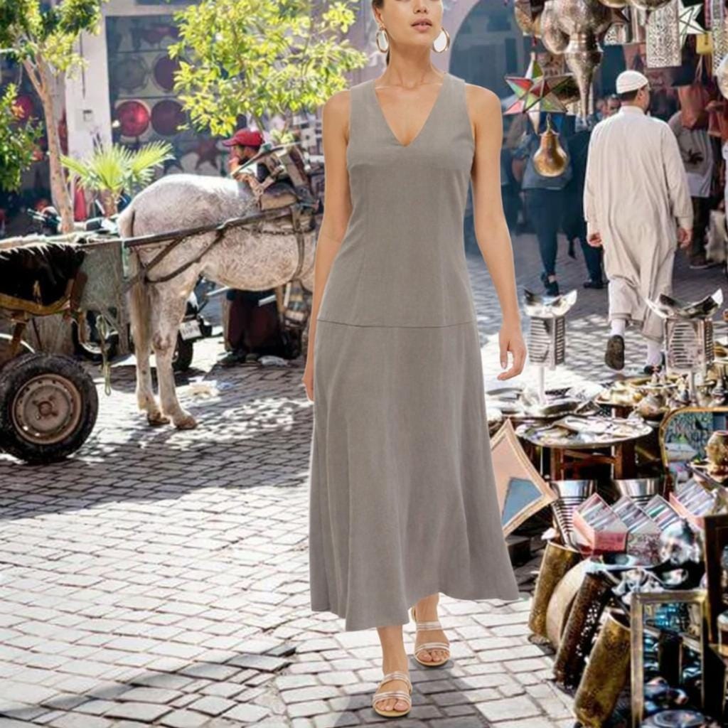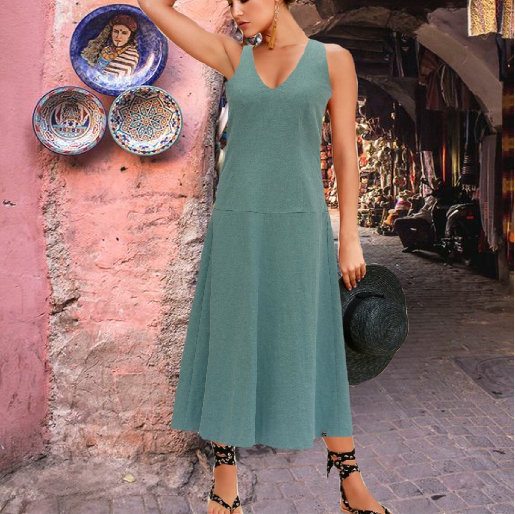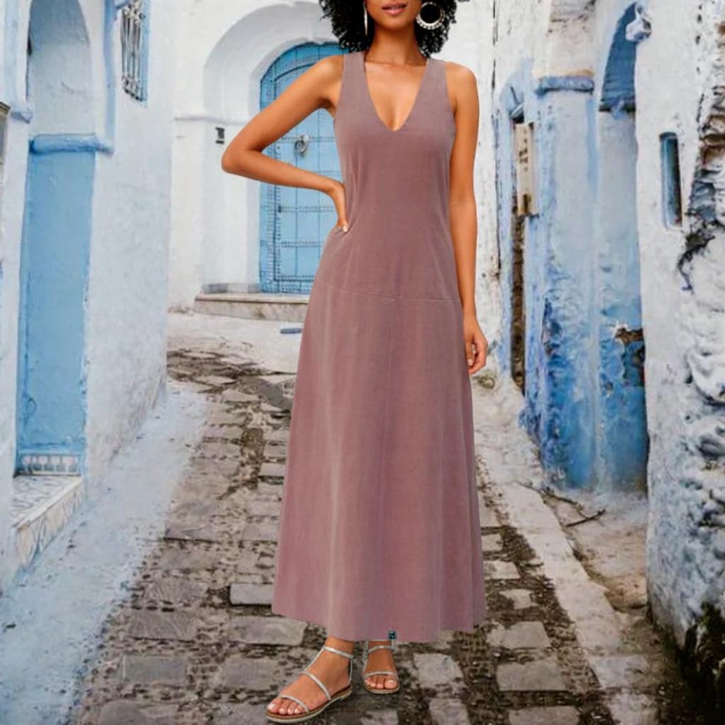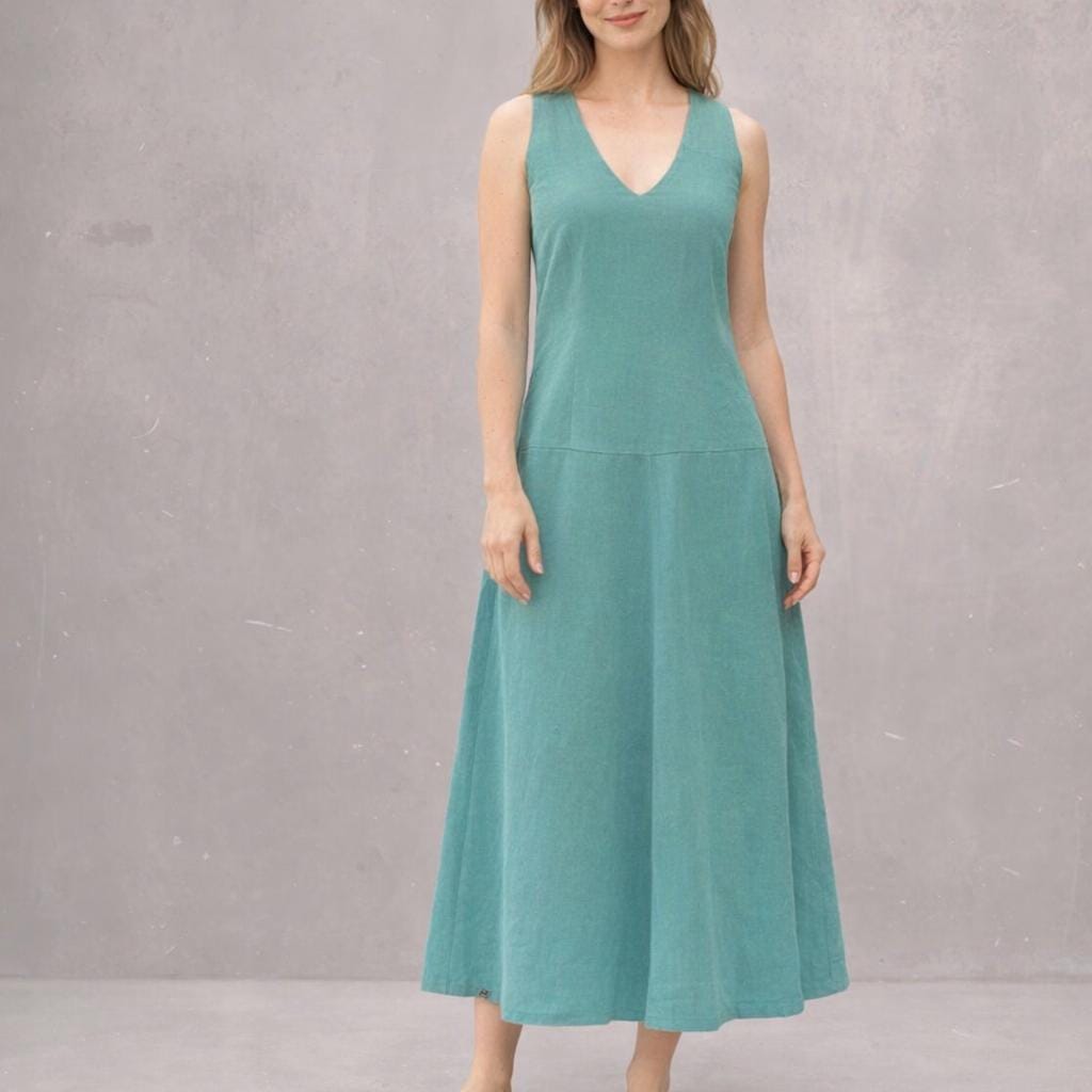 *Model:fitted body ( bodice with darts) with flared ankle-length skirt. Wear the dress smoothly/sporty with low sneakers or flip-flops or chic and elegant with heels