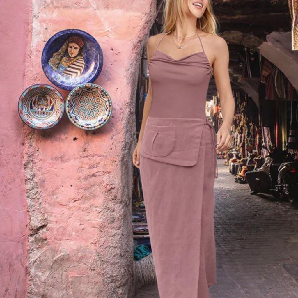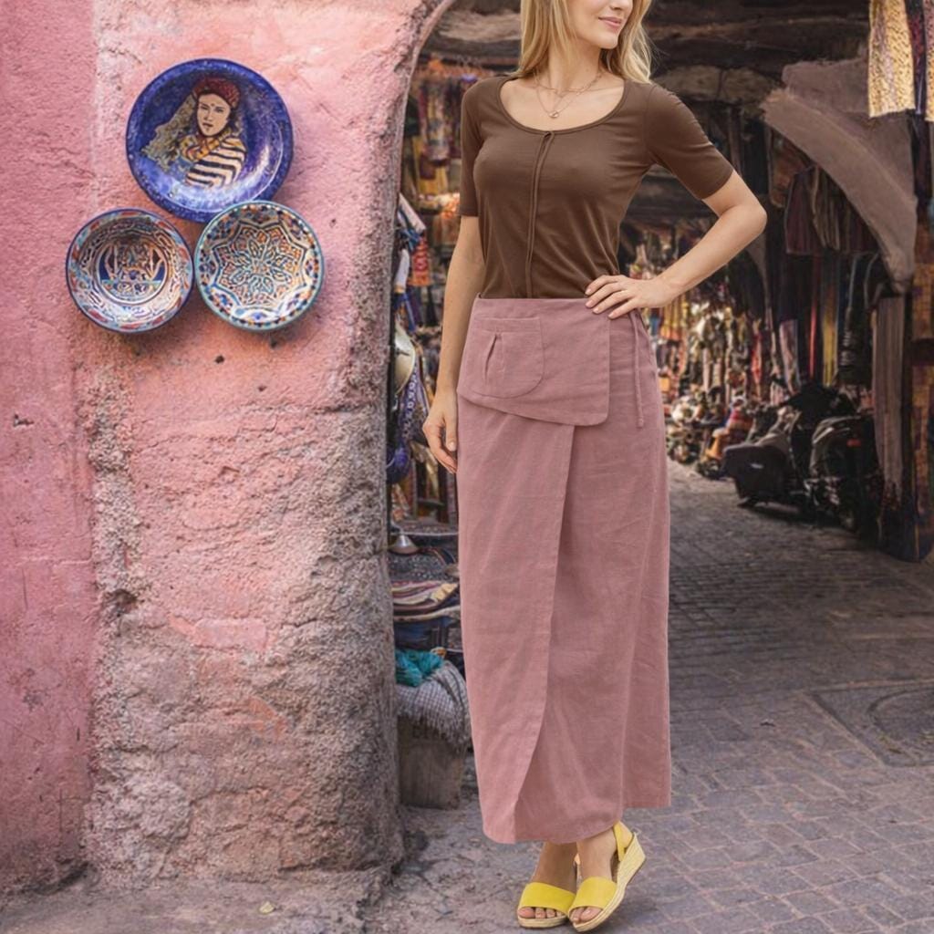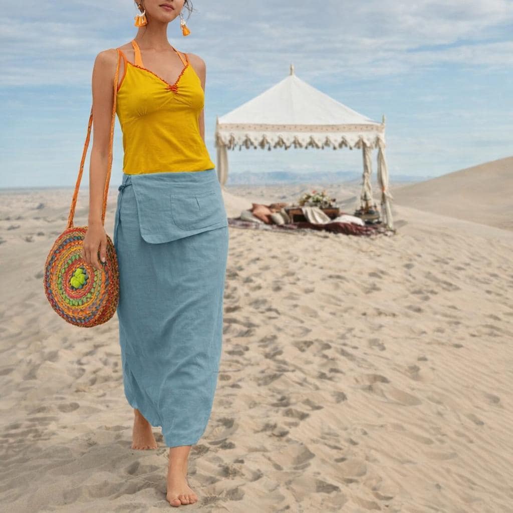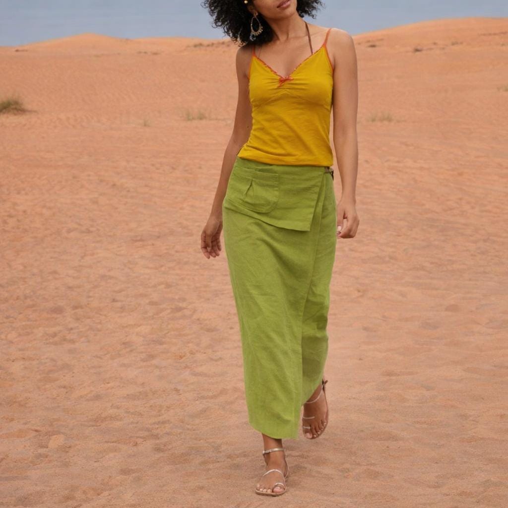 * Linen maxi skirt made of supple washed linen. This wrap skirt close at the waist with D rings and can be attracted with a strap.