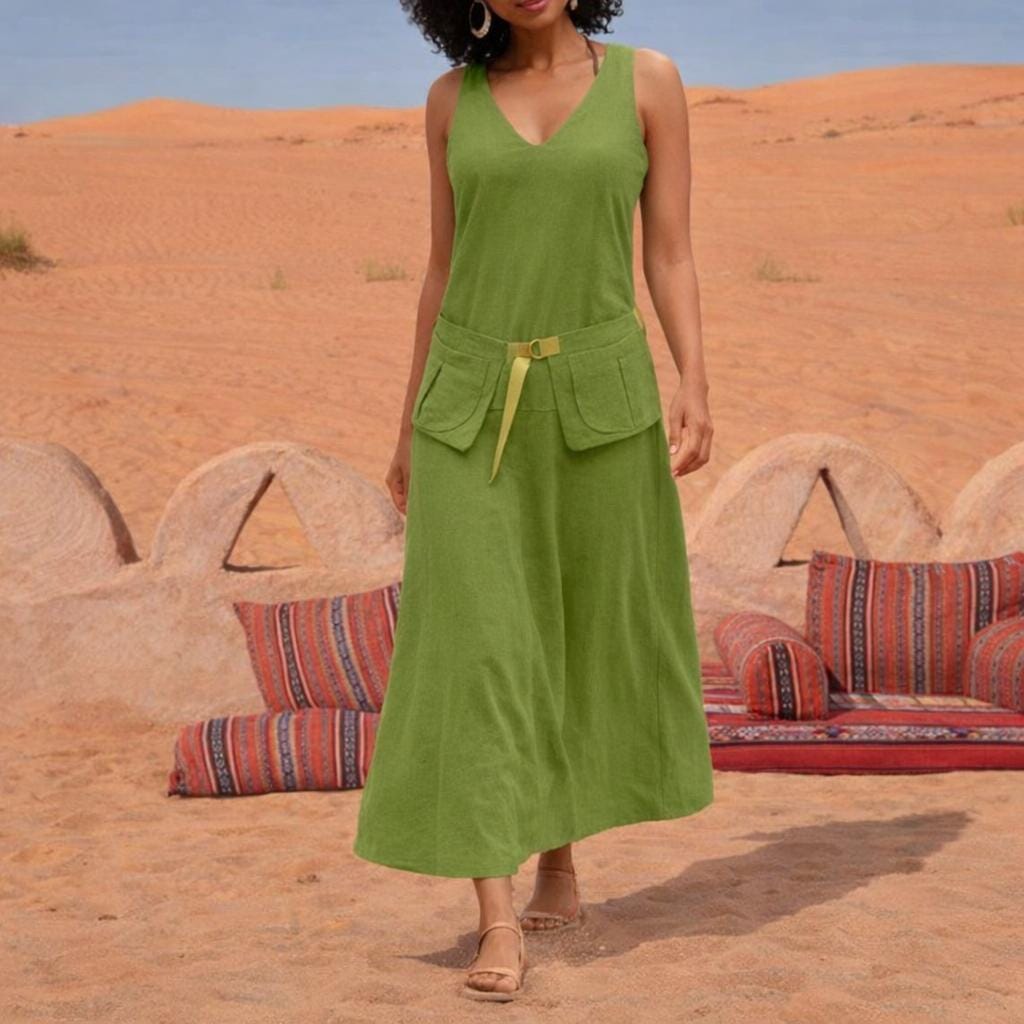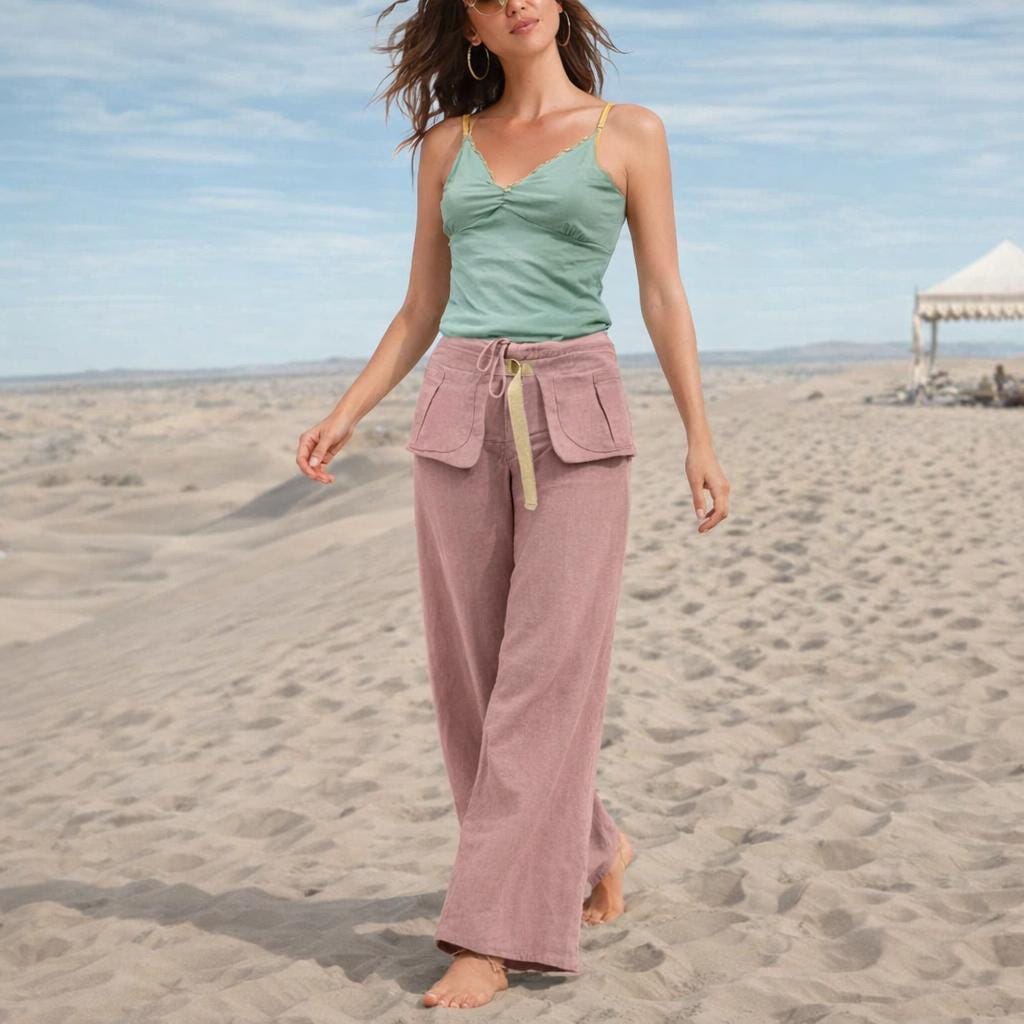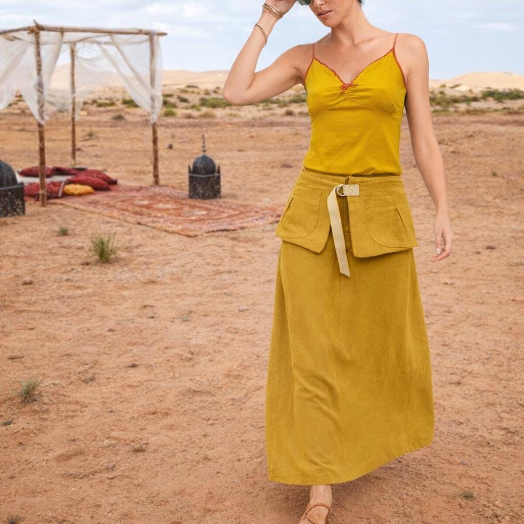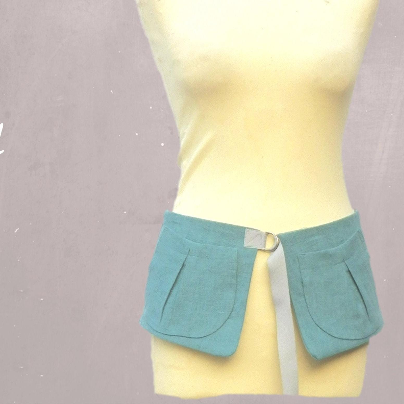 * Waist/hip belt with pockets, This accessory can be worn with all garments in the washed linen category. The waist/hip belt is lined and has a D rings closure.
