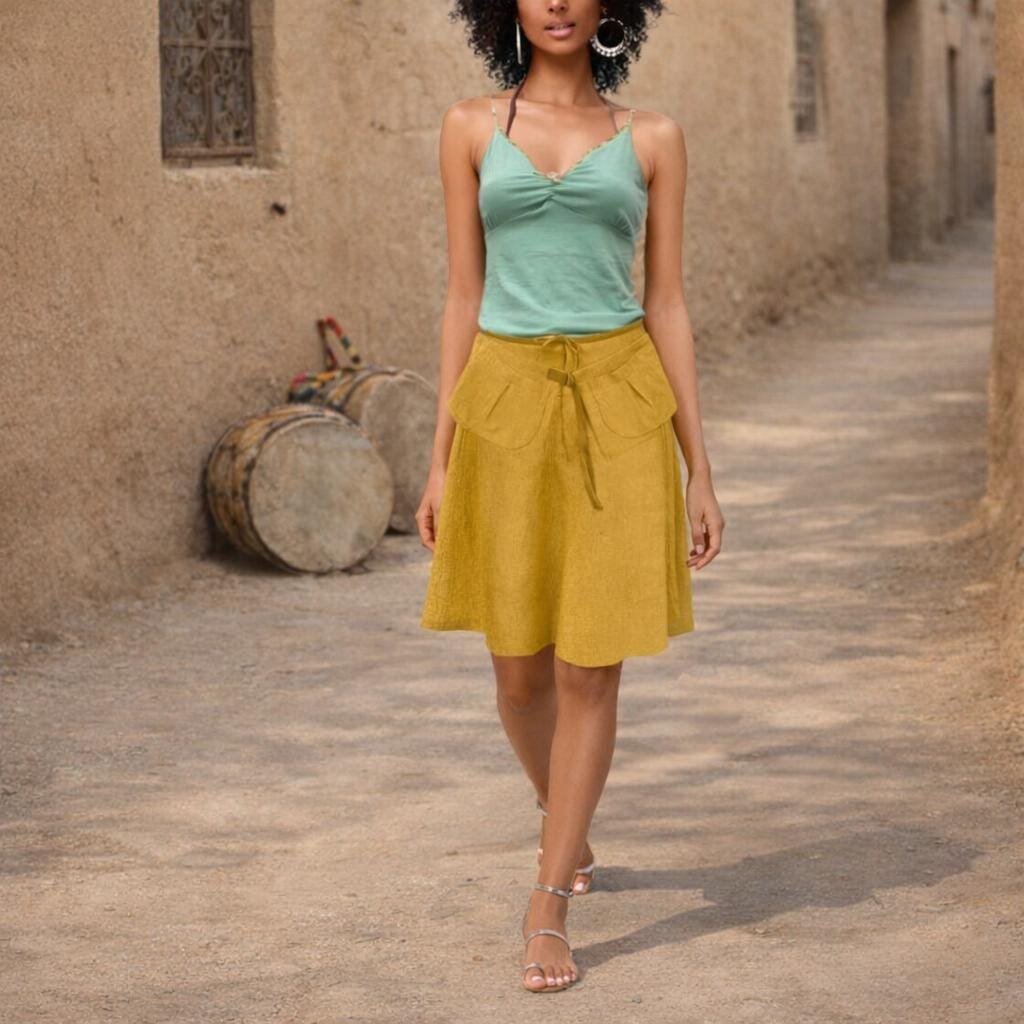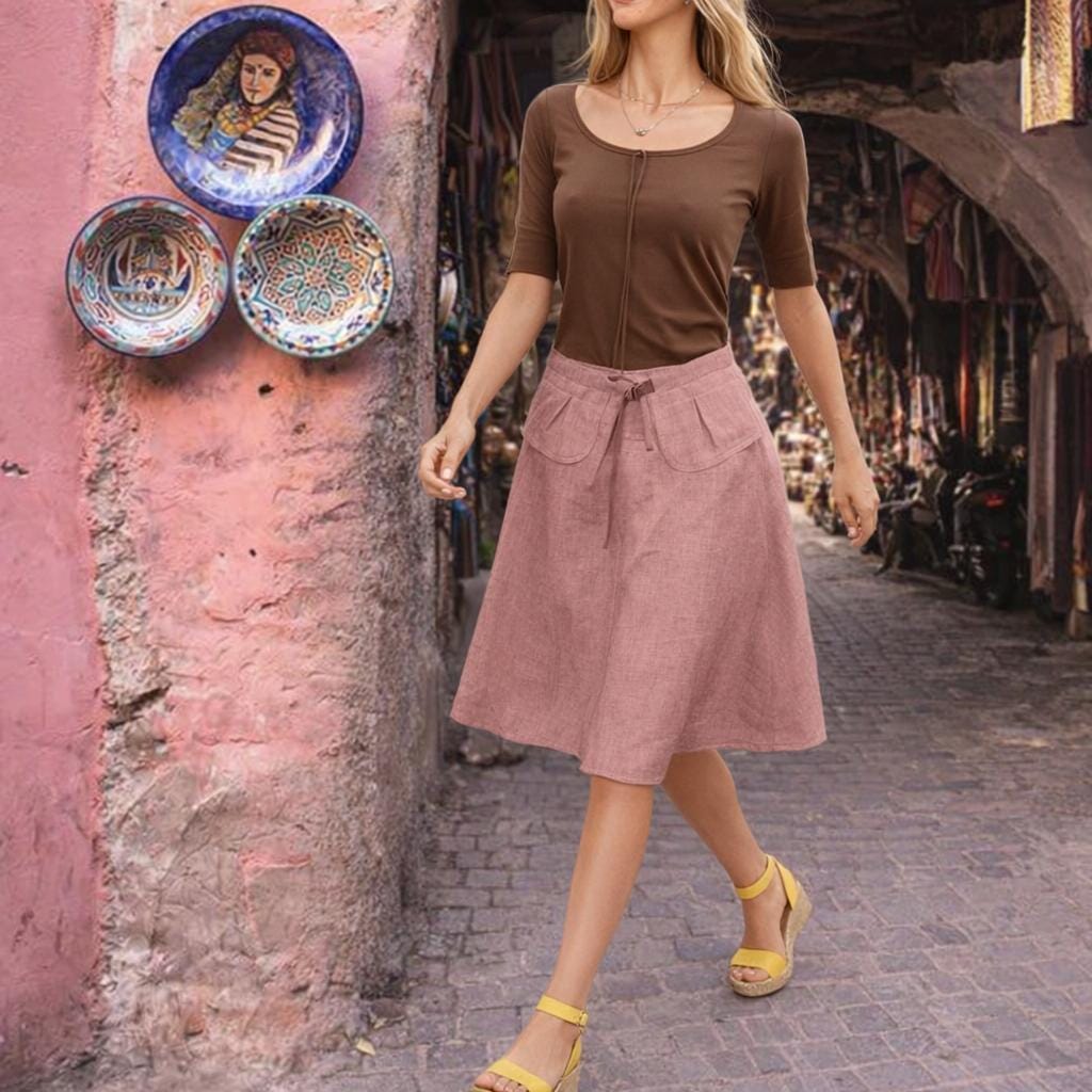 * Linen billowing skirt made of supple washed linen. The skirt has a fitting, round cut hip. The skirt close with a zipper at the center front and can be adjusted with a jersey drawstring. Very special worn with belt, but also worn without belt remains a comfortable and basic article.