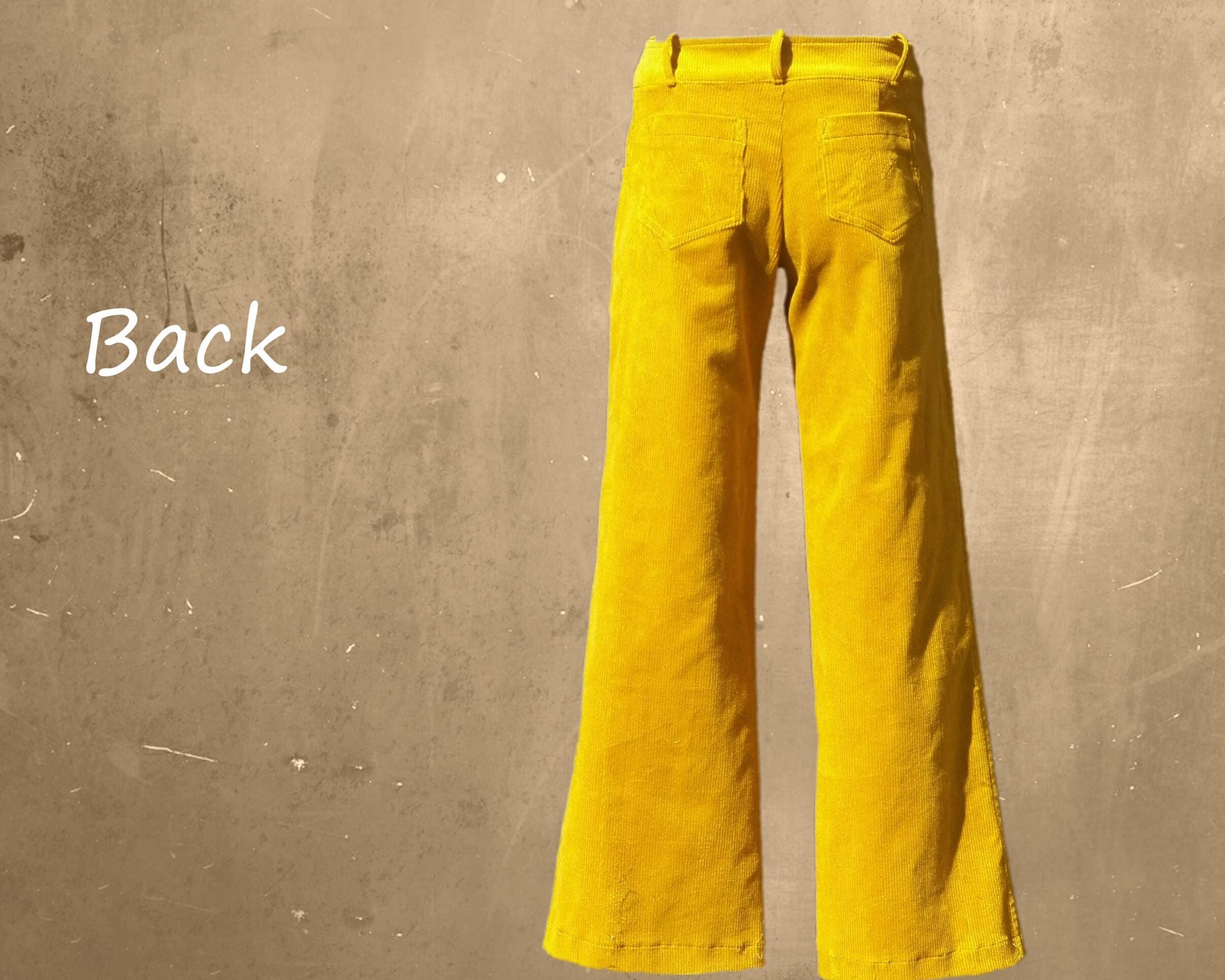 *MODEL; Basic heavy corduroy pants with slightly flared legs. Front and back side pockets.