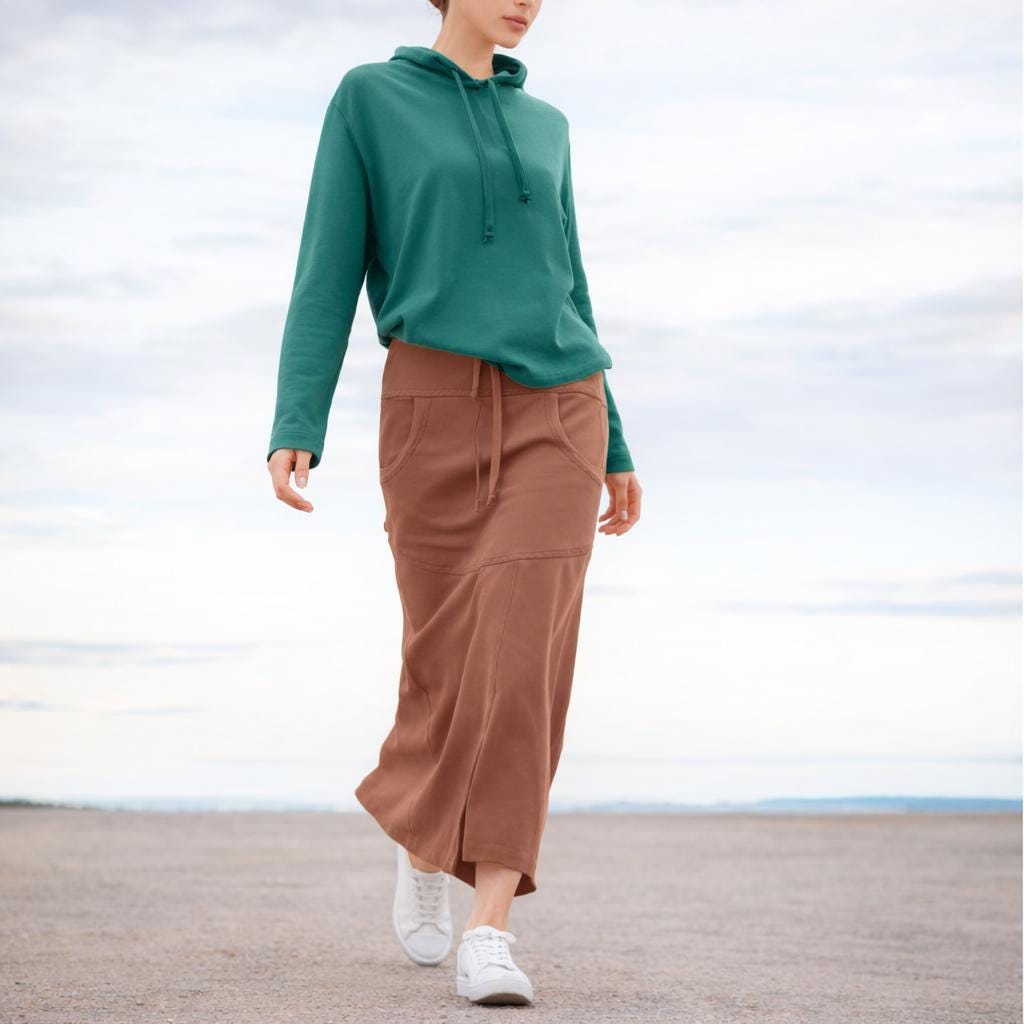 *Sporty maxi sweat skirt made of comfortable brushed cotton fabric.
